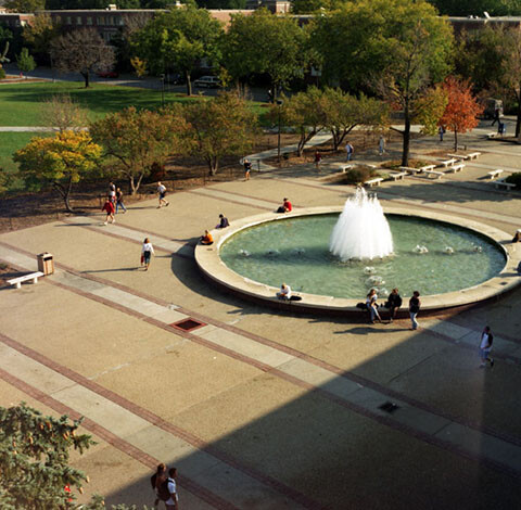 The fountain is designed for the campus community and visitors to dip their feet and legs into the water. However, wading is discouraged due to safety concerns and to protect the water jets, filtration equipment, pipes and fountain lights. Individuals are also asked not to climb on the fountain’s rocks.