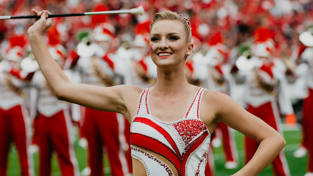 Every weekday at 7 a.m., Law joins the band for 90 minutes of practice. Then, most days, it’s off to a gym or the rec center for more baton practice before heading to a full day of classes and then lots of homework. The experience gained from taking classes at community college before coming to Nebraska has helped with the transition, Law said.