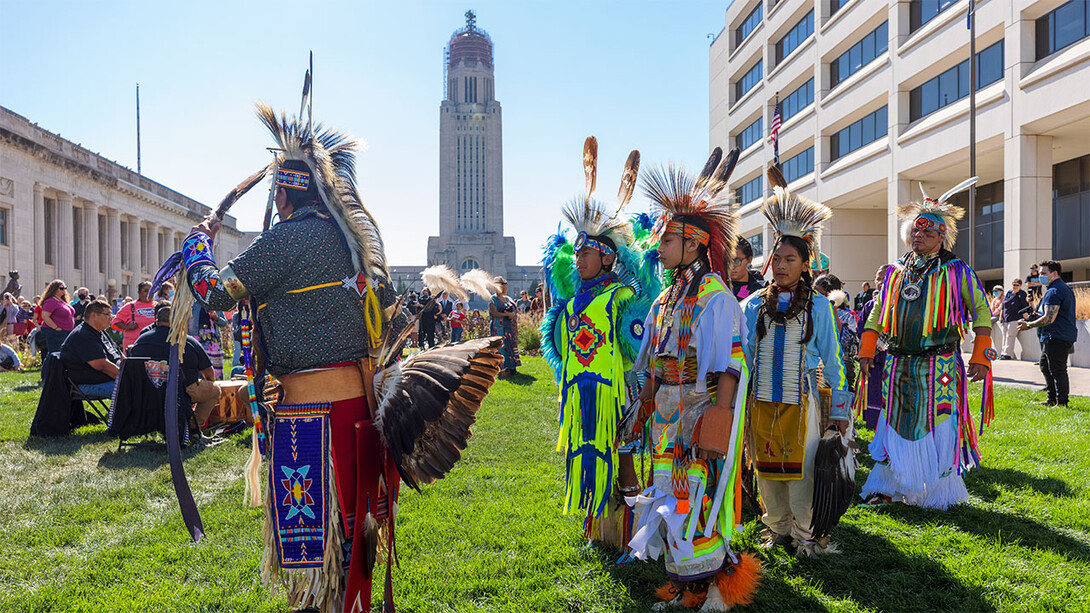 The sculpture dedication was part of the Oct. 11 celebration of Nebraska’s first official Indigenous Peoples’ Day. Chancellor Ronnie Green was among the speakers at the dedication.