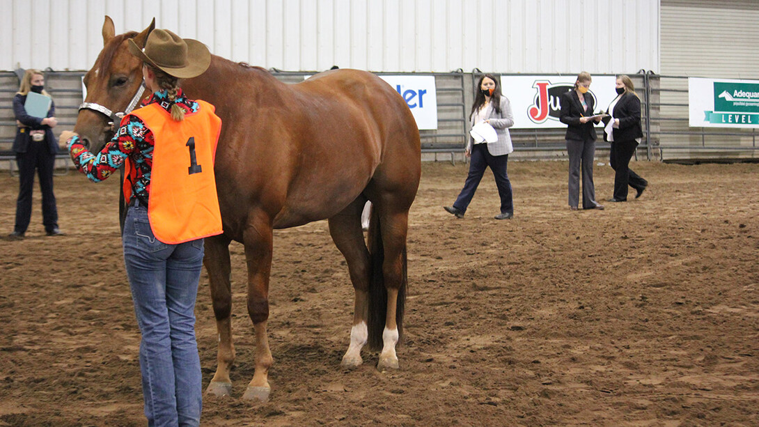 Still, with the cancellation of the All American Quarter Horse Congress in October due to COVID-19, there was going to be a long gap between competitions. Students could have easily become bored. However, Parrish’s creativity kept the team’s spirits up. She arranged a mock horse judging contest at the university’s R.B. Warren Arena that even drew a group from Cloud County Community College in Concordia, Kansas. The event gave students a chance to gain feedback in a contest setting.