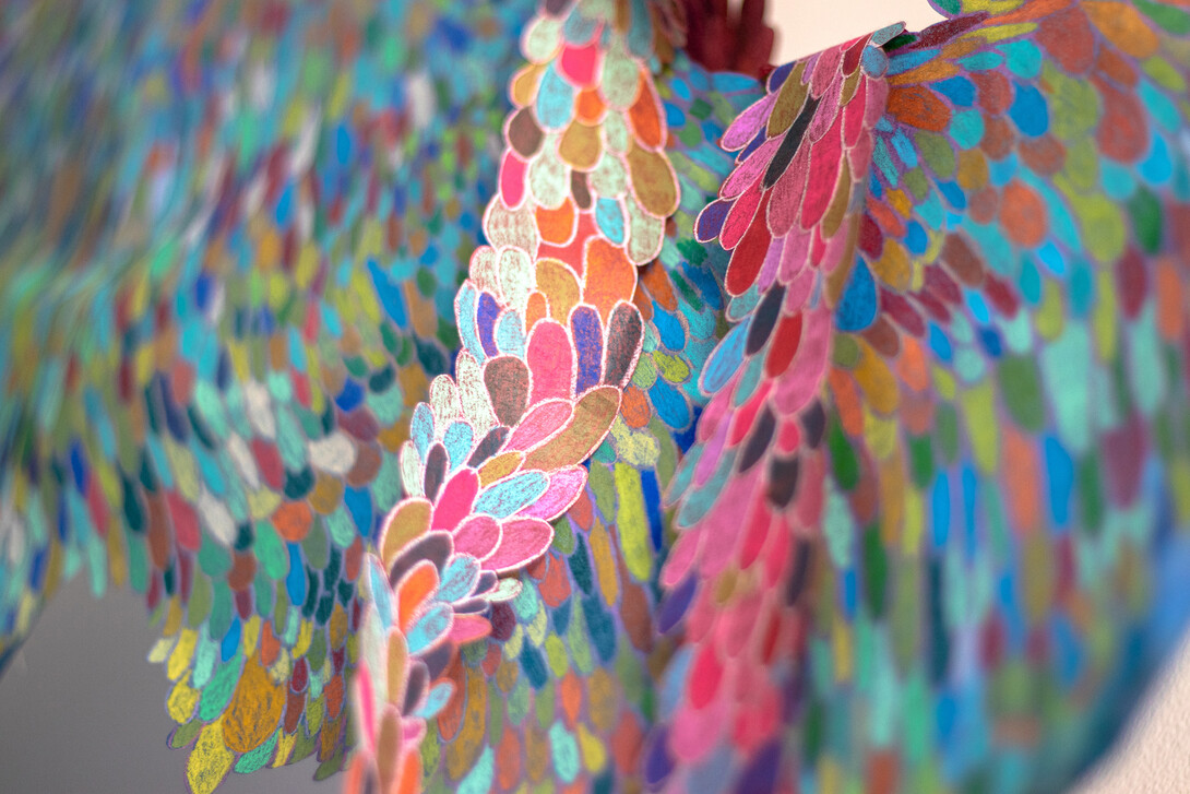 Demma writes in her artist’s statement, “I look to the natural world for inspiration in my work. I play the scientist, and the studio is my lab. I observe, hypothesize and run experiments. Then I interpret and process my findings. I am captivated by the variety found within all flora and fauna, as well as the relationships between animals and their environment. I am curious about cause and effect in the natural world (including the disastrous impact humans have had on ecosystems, such as coral reefs). Everything is connected, for better and for worse. There are arguments to be made that humans are nature. There is no separation, no line we can draw between things.”
