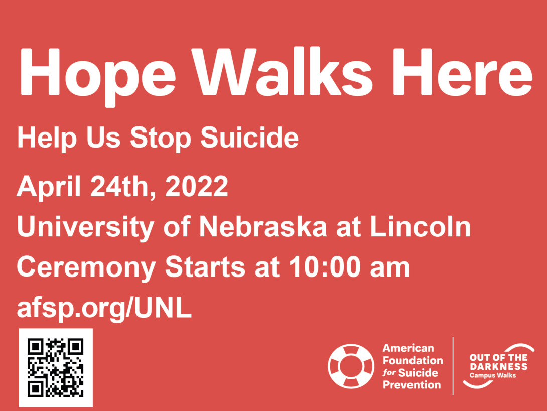 University of Nebraska-Lincoln is hosting Out of the Darkness, a walk for suicide prevention awareness on April 24.