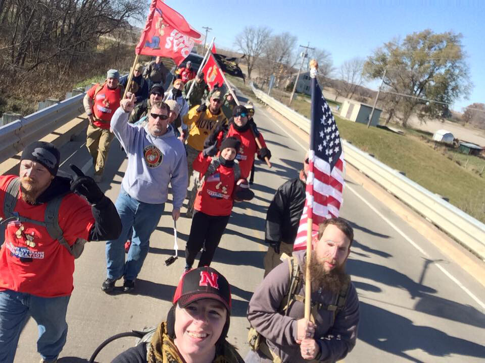 In Iowa, the ruck marchers are also promoting Operation Engage America, a nonprofit started by family members of veterans who committed suicide. The group offers support and assistance related to post-traumatic stress disorder and brain injuries to veterans, their families and first responders.