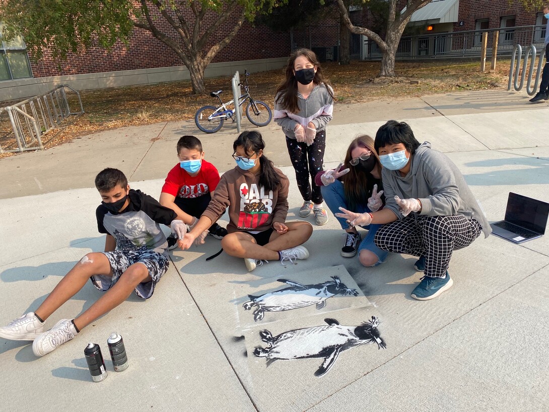 “The most significant learning experiences, I think, really come when you are with others outside working together,” she said. “I think that they do gain a number of motor visual skills, like learning how to create a multi-part stencil was great for them. But really, the thing that was important to me was that aspect of working together. It was a joyful experience that generated excitement. Especially at this time, I think that a lot of people can be unified through their love of animals and taking these images and making this pictorial rewilding of their environment. They do research, and maybe they can reflect back on what are the threats and what are my own practices that I can change. That’s a tall order, and I’m not expecting change tomorrow. Community arts involves planting trees that you will never stand in the shade of.”